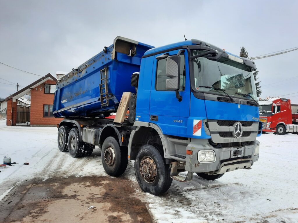 Nasza flota składa się z 3 samochodów marki Mercedes Actros. Każdy z nich to model 4-osiowy w układzie 8×6, dzięki czemu bez problemu poradzi sobie nawet w trudnych, błotnistych warunkach na budowie. Ładowność naszych samochodów to 17,5t.