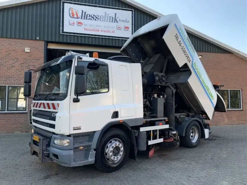 Do dyspozycji mamy profesjonalną zamiatarkę uliczną marki Bucher & Schoerling, na podwoziu DAF LF. To wysokiej jakości sprzęt ze zbiornikiem na wodę o pojemności 5 metrów sześciennych, wyposażony w szereg urządzeń czyszczących, spłukujących i odkurzających nawierzchnię.